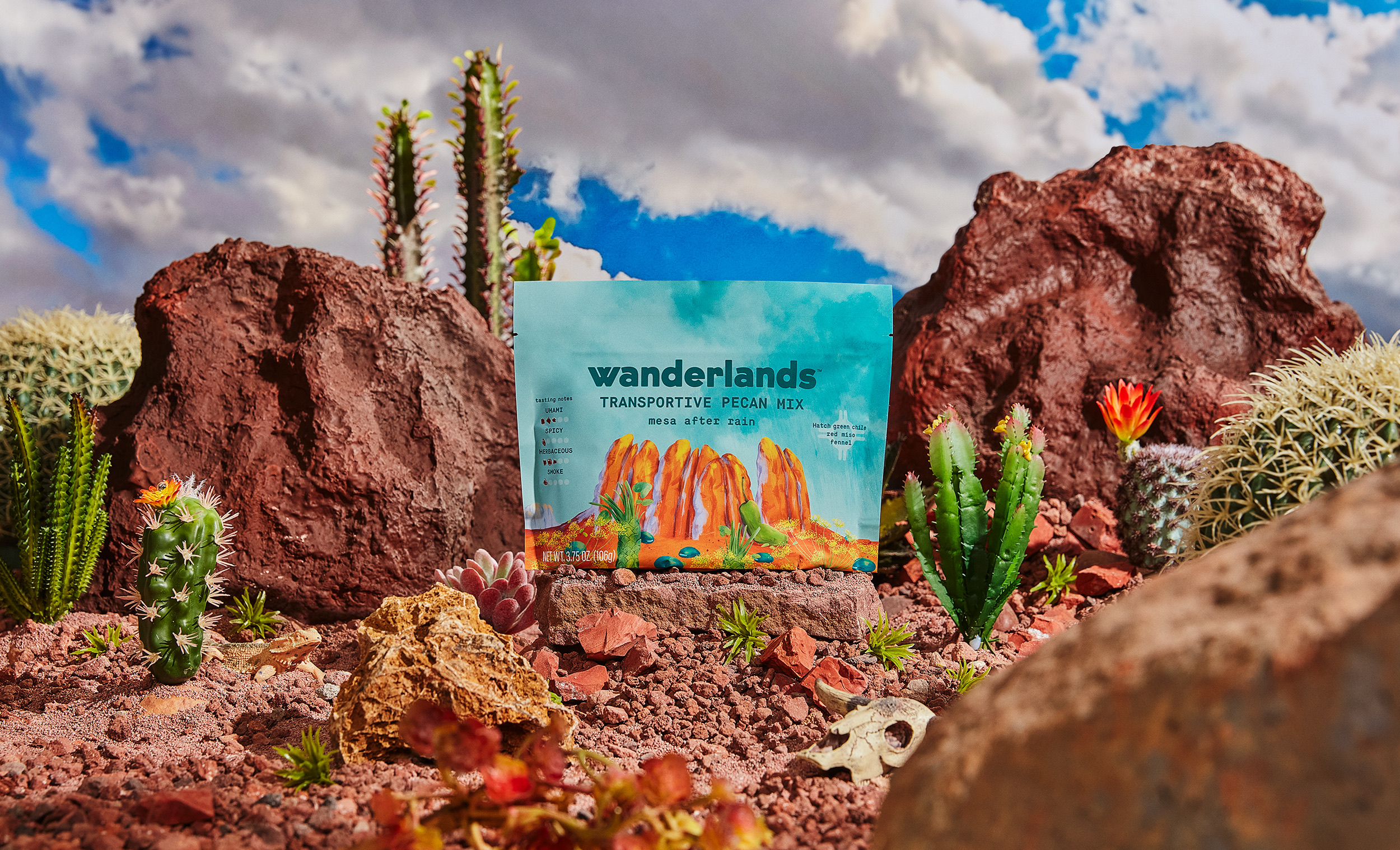 The colors shift from muted to dreamlike, amplifying the flavors’ geographic inspirations. The illustrated “flavor-scapes” substitute realism with an imaginative, almost cinematic take on the Southwest.