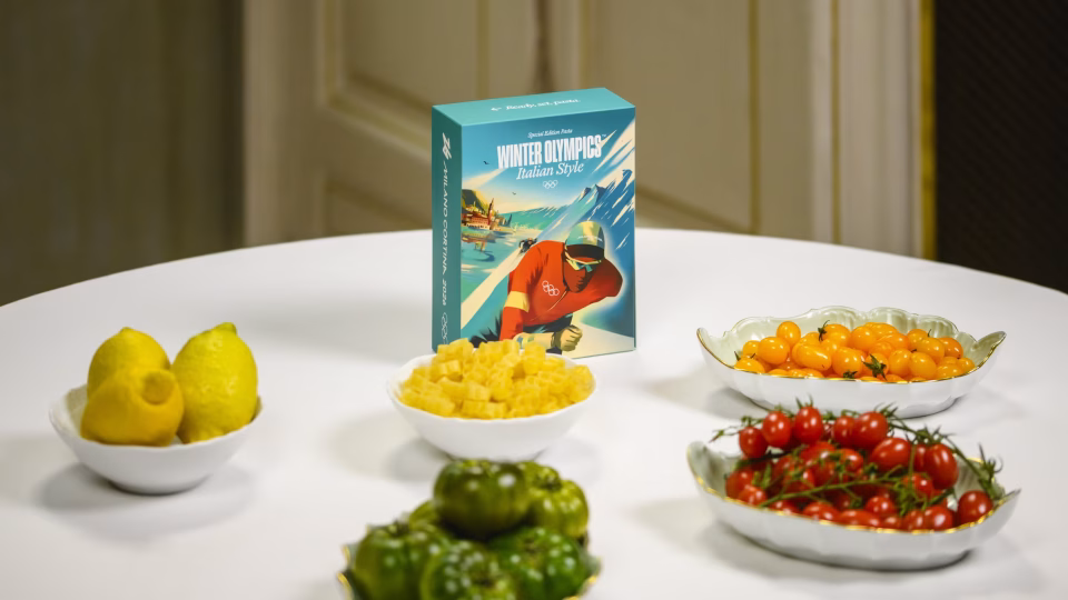 Illustrator Marianna Tomaselli designed limited-edition Olympic Rings Pasta packaging for the 2026 Milano Cortina games.