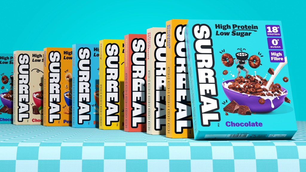 In 2022, Kit Gammel and Jac Chetland launched Surreal, a healthier-for-you, protein-packed cereal. Since the cereal’s inception, Surreal has had an irreverent voice, which is evident in Onward’s initial branding and packaging, advertising, and social media. For instance, they created a billboard announcing Surreal’s debut in supermarket chain Sainsbury’s, which was really just a chance for the founder to stick it to his old man regarding his career choices.