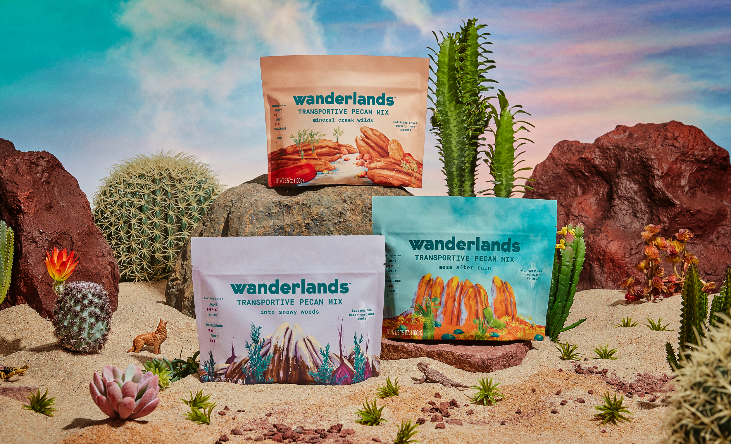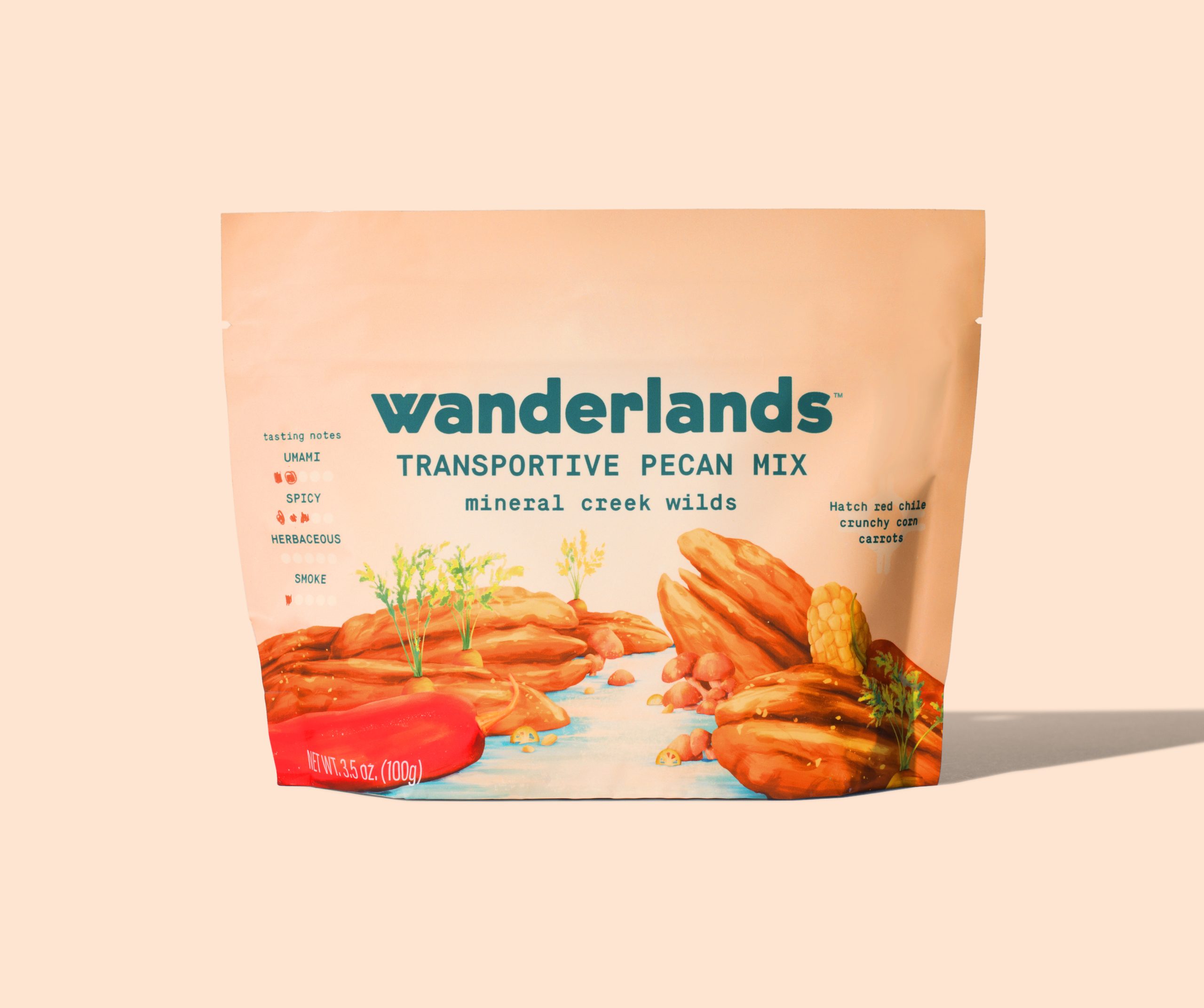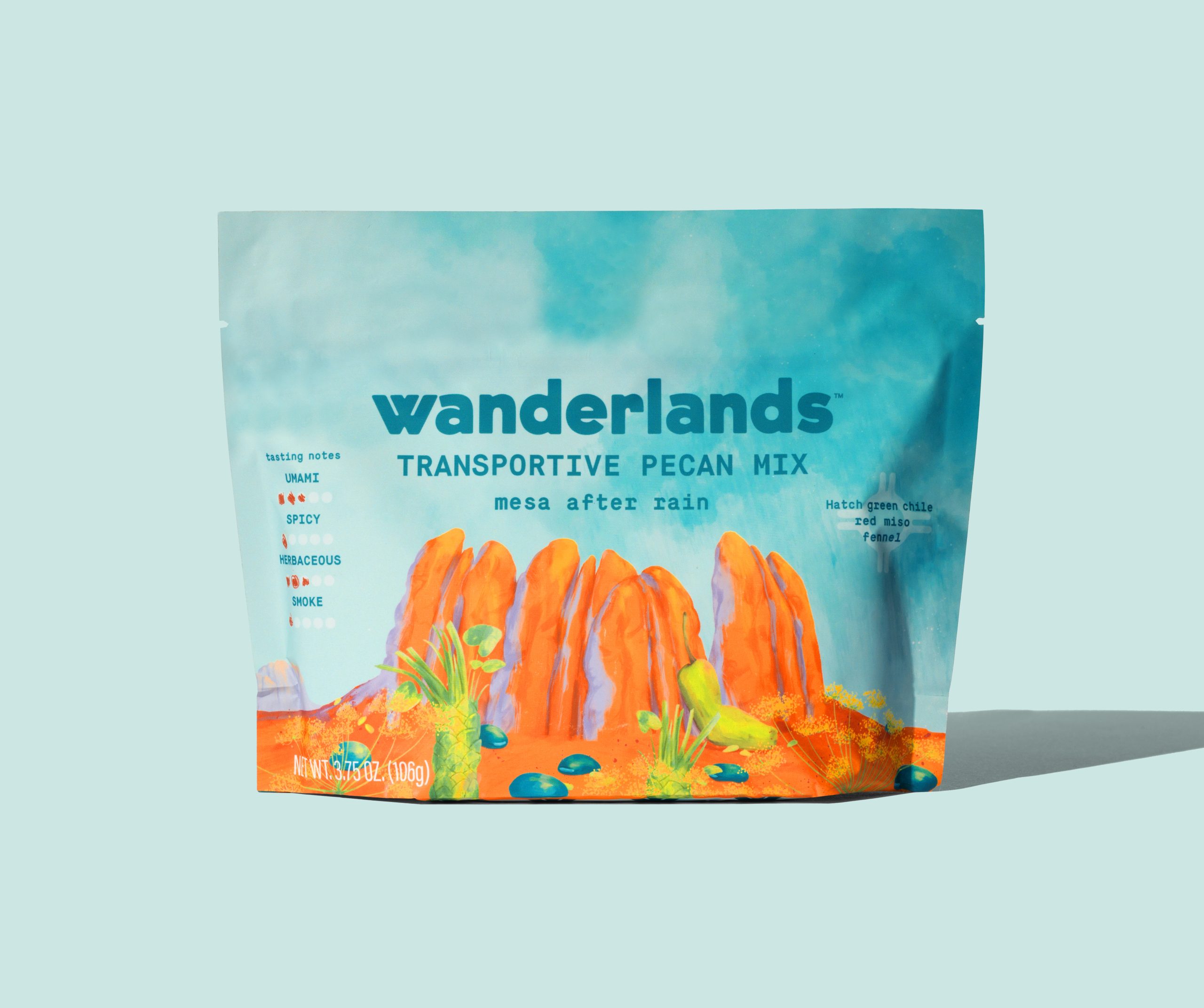 The colors shift from muted to dreamlike, amplifying the flavors’ geographic inspirations. The illustrated “flavor-scapes” substitute realism with an imaginative, almost cinematic take on the Southwest.