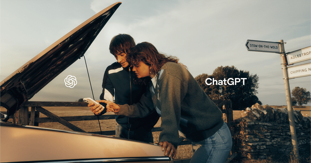 There’s an old rule in marketing that says people don’t care how you made the thing; they care how it makes them feel. And maybe that was true, but now people care more than ever not only about how things make them feel but also about the process of making them. ChatGPT’s new ad campaign makes this clearer than ever. Instead of using AI, the campaign is shot on film, with real actors and a recurring visual motif: two people and one screen.